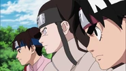 In the anime, when the grown-up Sasuke and Boruto were sent back in time to shortly after Sasuke's defection, the two time-travelers pretended to be traveling performers and were put under watch by Naruto. During which, Lee and his friends helped Boruto and Naruto clean up a hotspring after the commotion Naruto and Jiraiya caused.