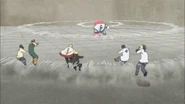 The following day, Lee's team ran into a team of Ame-kunoichi. As Neji calmly asked the other team if they had an Earth scroll, they quickly attack Tenten and her team. After the initial skirmish, the enemies decided retreat, deciding that Team Guy was not the target they sought from their chakra levels. Despite this, Lee's team pursued the Ame-nin into an old ruins. During their continued battle, the ground collapsed, swallowing Tenten and Ajisai and separating them from their respective teams. Neji insisted to the other Ame-nin that they call off the battle as their respective team-mates were more important. While they agreed, the Ame-nin decided to go about saving their third member on their own. Lee suggested to Neji that they plow their way through the rubble, only for Neji to reject the idea in fear of causing more damage than desired.