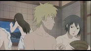 While being in the village minding his own business one day, Sasuke had over heard how the civilian villagers angrily blamed Naruto for Minato's death. However Sasuke saw Naruto run pass him since he heard how the villagers spoke about him in a cold rudely way. But he didn't knew that was Naruto, and he had called him weird. While at the age of 4, he begs Itachi to teach him the shurikenjutsu. Itachi tells him that he is very busy, and just suggests that he asks their father. Sasuke takes Itachi's constant claims of business as proof that he dislikes him. Itachi denies it, pokes him in the forehead, and tells Sasuke the next time their parents are off, he might have time to spend with Sasuke. At dinner, Sasuke asks them about it, and they confirm they'll be off visiting Mikoto's family. They offer to take Sasuke with them, and are surprised to learn that Itachi said he'd teach Sasuke. The next day, Itachi trains Sasuke in throwing a kunai. That night, Itachi makes them a huge dinner. While thinking he overdid it but Sasuke didn't mind. After eating the two sleep outside. When Itachi tries to teach the meaning of the clan's crest to Sasuke by saying that their clan is different now. Sasuke ignores this and says he will simply surpass Itachi. The next day, as his parents are back home and much to Sasuke's surprise Itachi had already left for a mission.
