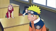 Nevertheless, even though Sasuke hated Iruka's class lectures. He would pass every single technique that Iruka would review. This is when Sasuke would refer to Naruto as "dobe". In the English version, he would call Naruto "loser". While still being the best in his class, Sasuke notice that Hiruzen would always comfort by patting him on his head. However at the age of 10, Sasuke would develop a habit by saying "Hn" whenever he spoke to his classmates and teachers. In the English version, he would say "Hmph" to his classmates. But at the age of eleven, Sasuke started to fold his hands together on top of a desk, and would place his hands in his pant pockets whenever he walked away.