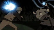 Sasuke also has a natural affinity for Lightning Release, learning the Chidori under Kakashi's tutelage. By using the Chidori, he is able to easily strike through and severely injure most targets. In Part II, he had greatly developed his lightning chakra, creating many powerful techniques derived from the Chidori, one of which utilises natural lightning instead of chakra. When using his cursed seal or the Six Paths Chakra, his lightning chakra becomes darker in colour, though it's not clear if this changes its actual properties in any way. Sasuke can also channel his Chidori through his weapons, mainly his sword, for extreme cutting power that also numbs anyone it cuts. He even earned praise from the Fourth Raikage for penetrating his Lightning Release Chakra Mode. Utilising the Six Paths Power, Sasuke can enhance his Chidori, allowing him to effectively combat and even bisect Madara as the Ten-Tails' jinchuriki. He can also channel his Chidori through his Complete Body — Susanoo via its primary left hand. Once combining his chakra with the tailed beasts' through Susanoo, Sasuke's lightning-natured techniques, his strongest being Indra's Arrow, become capable of matching Naruto's senjutsu-enhanced techniques. Two years after the Fourth Shinobi War, his power and skill with the Chidori grew to the point of destroying half of a falling meteor.